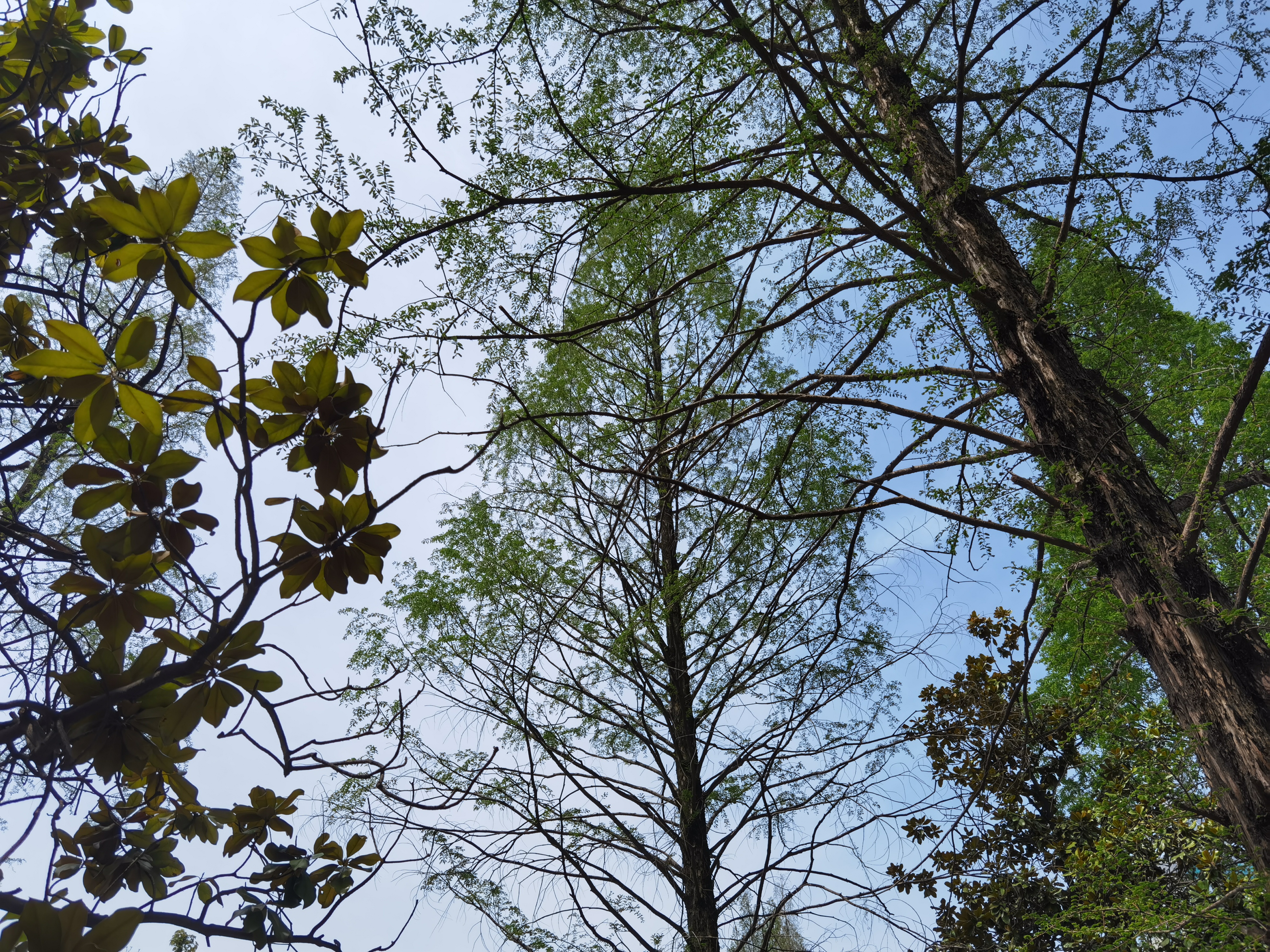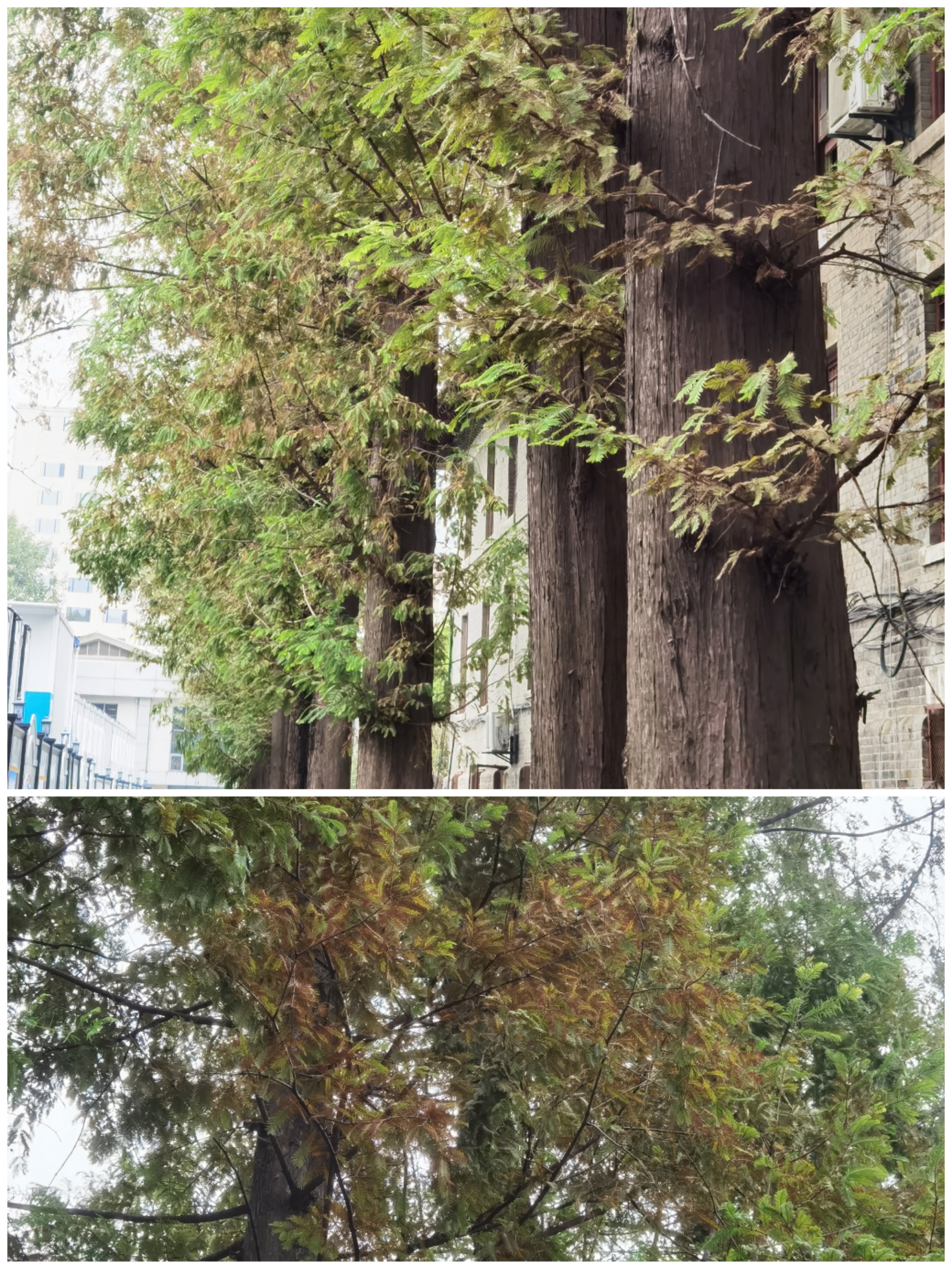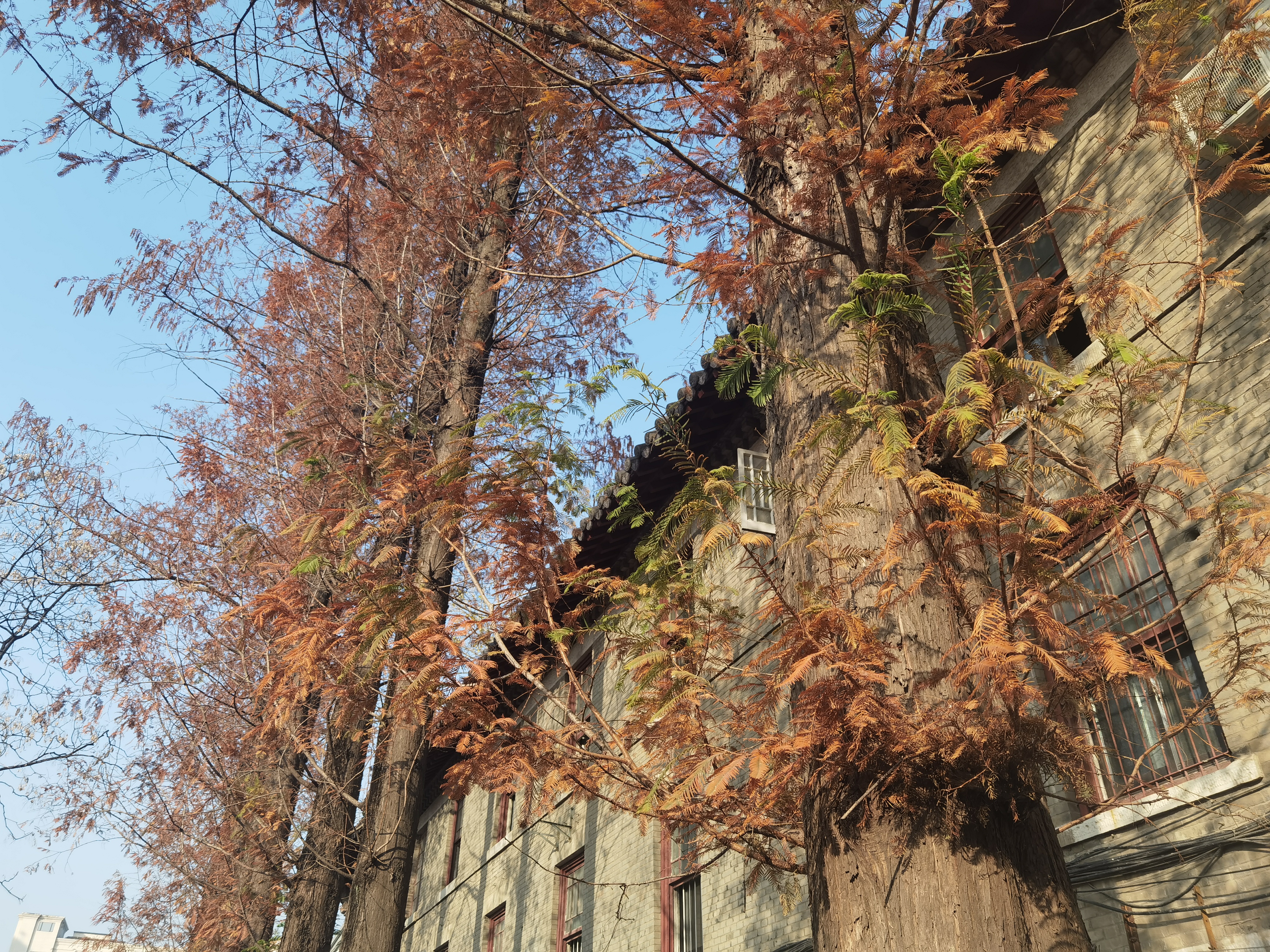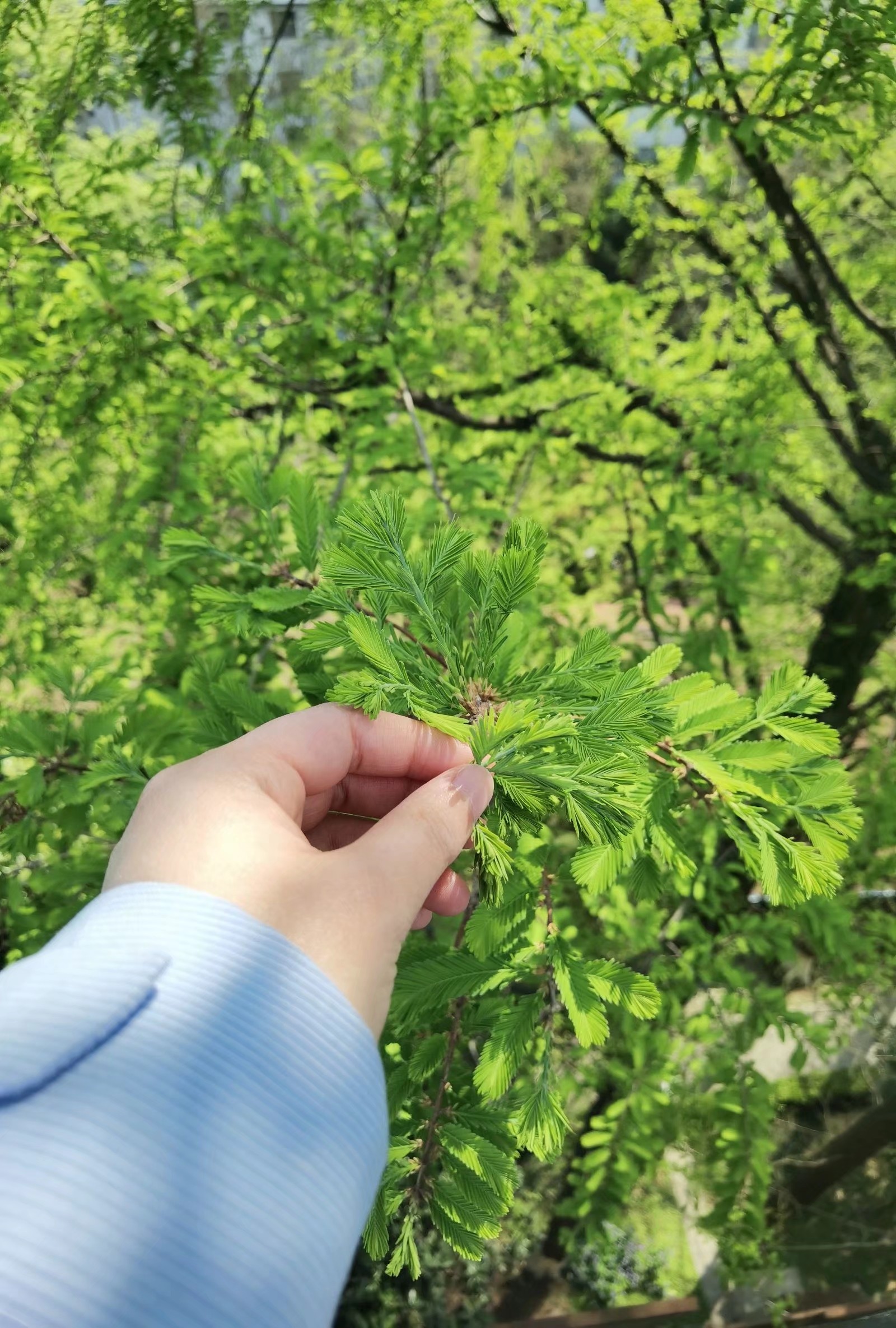 上图摄于 2022/04/04。高耸的叶子如何才能企及?唯有上物理楼天台。然而因为这学期没有实验课也就没去。很容易想象出天台上看水杉的乐趣。那么祝水杉健康!