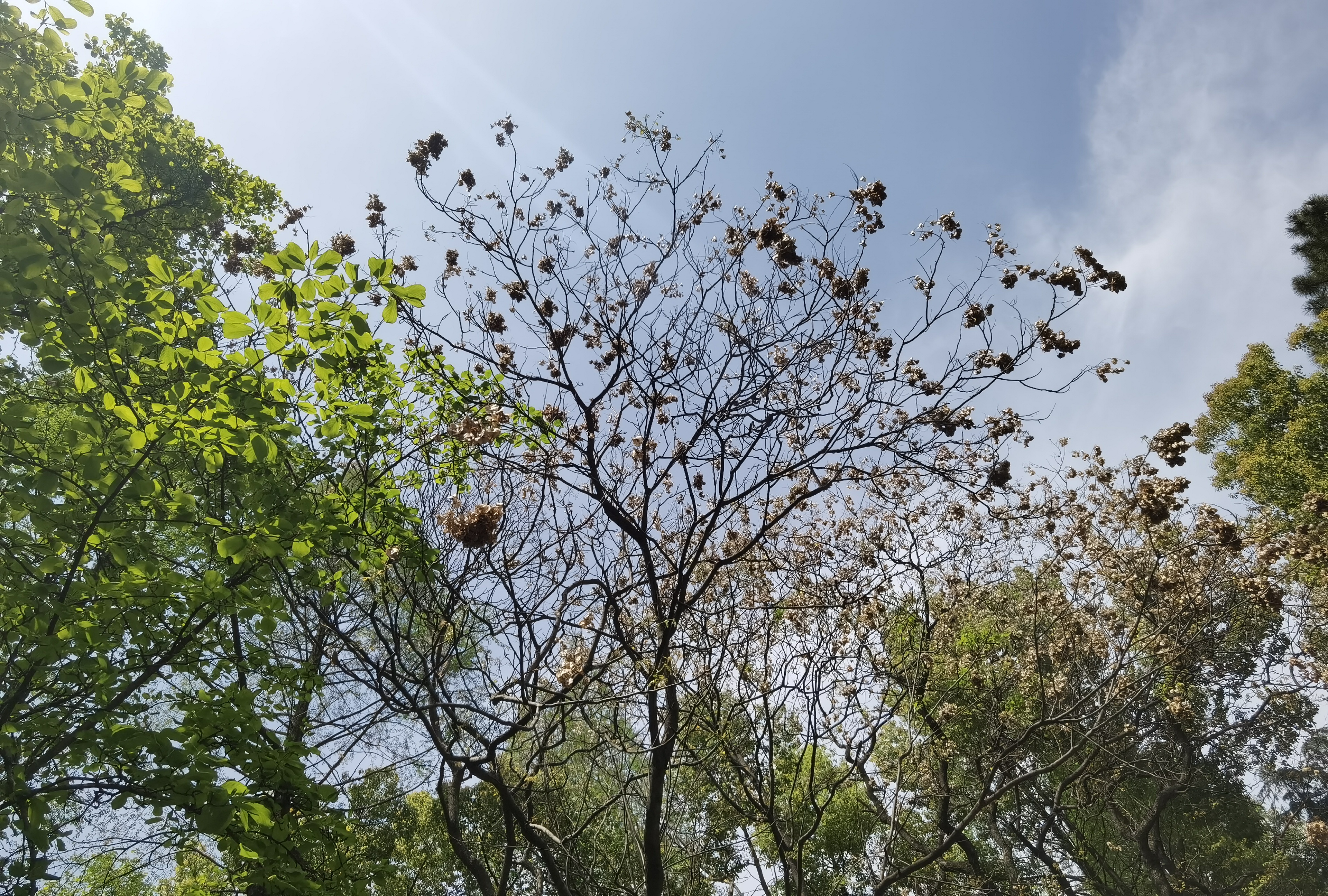 上图为 2022/04/04 拍摄,这时落叶乔木大多已经长出新叶,栾树似乎还是光秃秃的,果实还挂在树枝上。相信很快栾树也会郁郁葱葱,而我的记录到此结束。祝栾树健康!