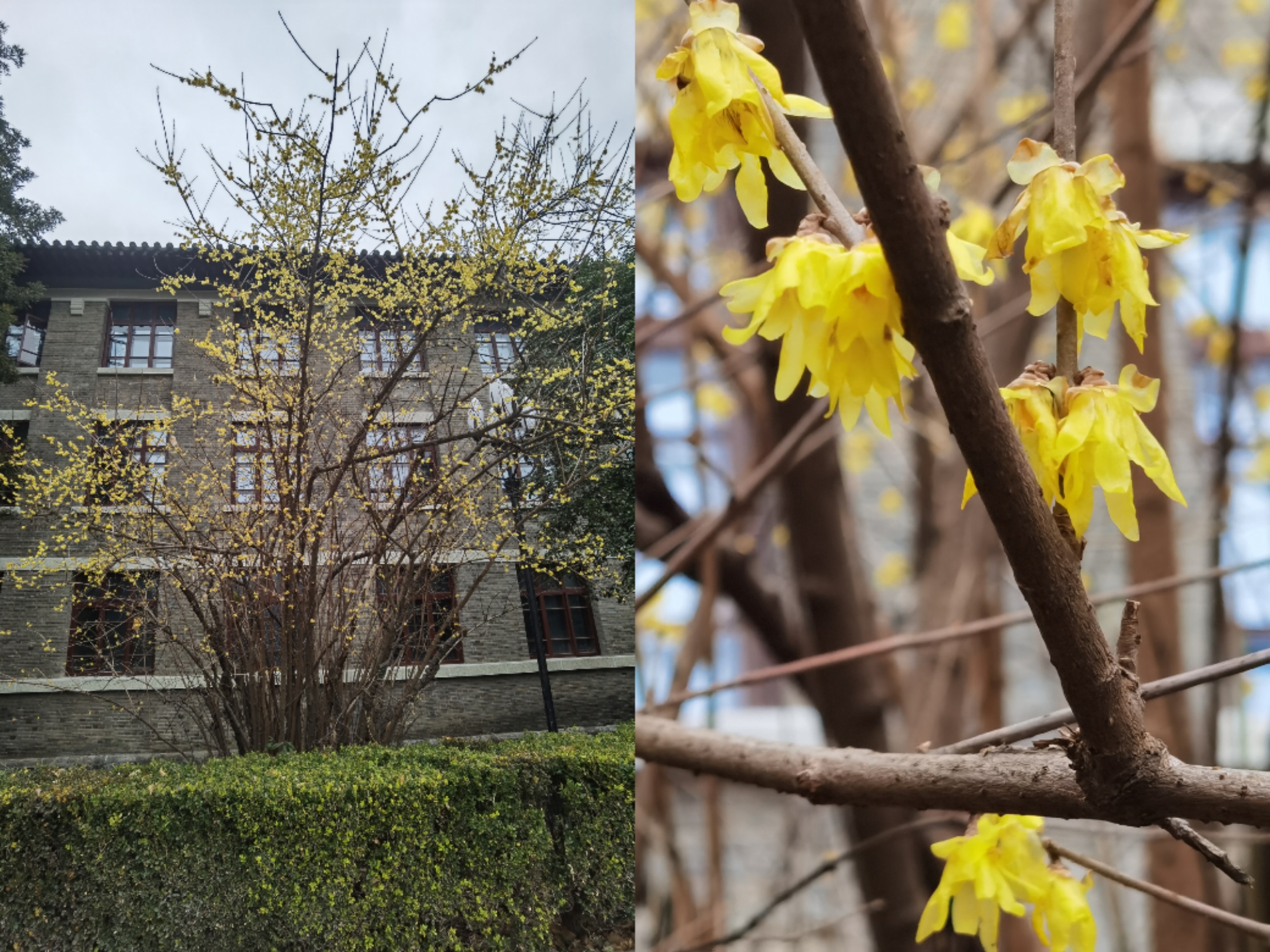 据记载,截至 2015 年,此株蜡梅已有 105 年历史。笔者第一次见到其开花,是在 2021 年 1 月寒假期间。此前该区域一直装修,不得进入。第一次进入就遇见了花期。